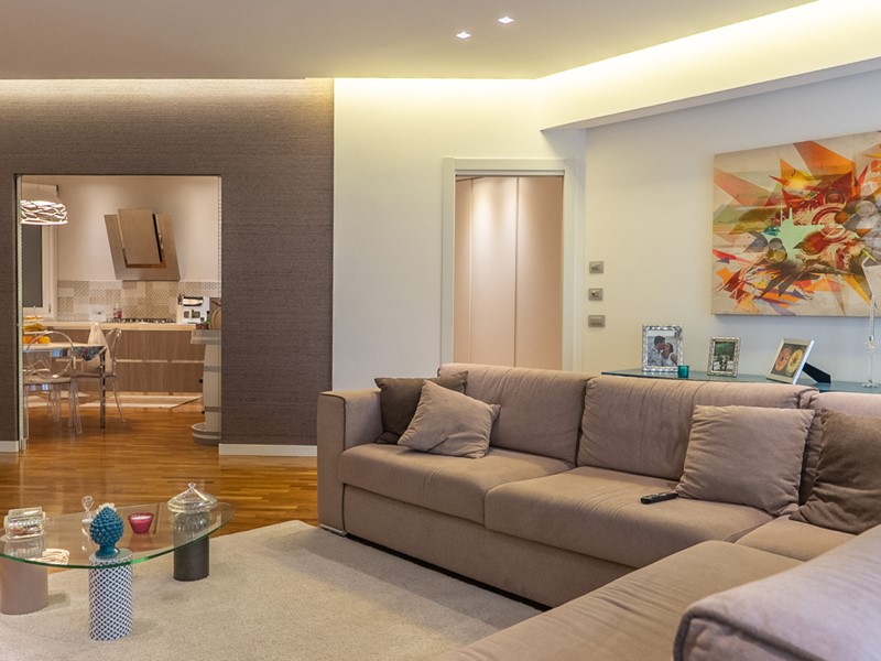 L’immobile, estremamente luminoso grazie all’ottima esposizione, si compone di un ampio salone di rappresentanza con illuminazione LED integrata, cucina abitabile separata dal design contemporaneo,