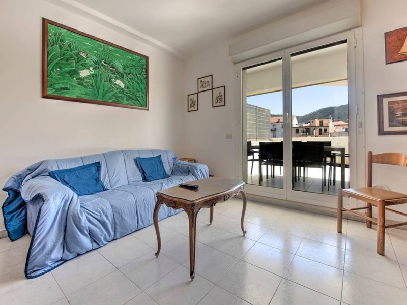 Appartamento situato al primo piano di un palazzo di quattro fornito di ascensore e privo di barriere architettoniche. Entrando troverete subito un'ampia e luminosa zona giorno, con divano letto per due persone, tv e tavolo da pranzo all'americana. La cucina a vista è moderna e fornita di tutto ciò che può servirvi per preparare e consumare pasti durante la vostra permanenza: piano cottura, forno, frigo e freezer, lavastoviglie, utensili da cucina e stoviglie. Una porta finestra fa da accesso alla grande terrazza privata dell'appartamento, fornita di tavolo e sedie esterne dove potere pranzare, cenare o rilassarvi durante le belle giornate della Riviera.