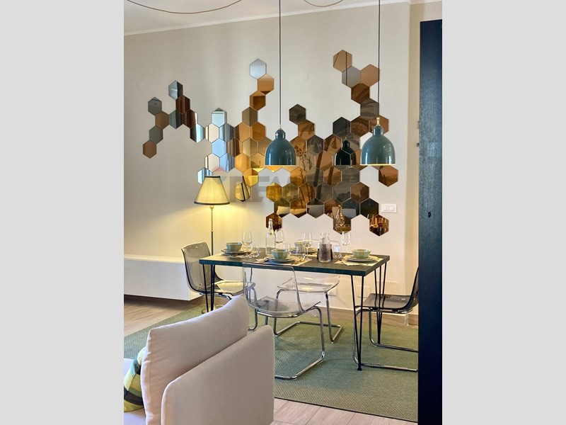 Lappartamento viene consegnato completamente arredato con mobili di pregio e corredato di ogni necessità: dalla biancheria per letti e bagni fino al set completo di utensili da cucina.