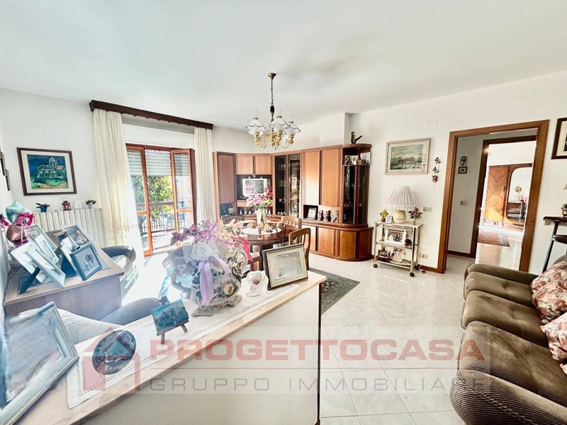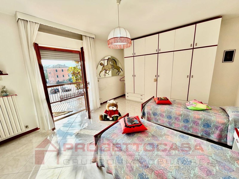 La zona notte, separata da una porta, offre due camere matrimoniali con balcone, una camera singola e un bagno finestrato con vasca, garantendo spazi ampi e confortevoli per tutti i membri della famiglia.