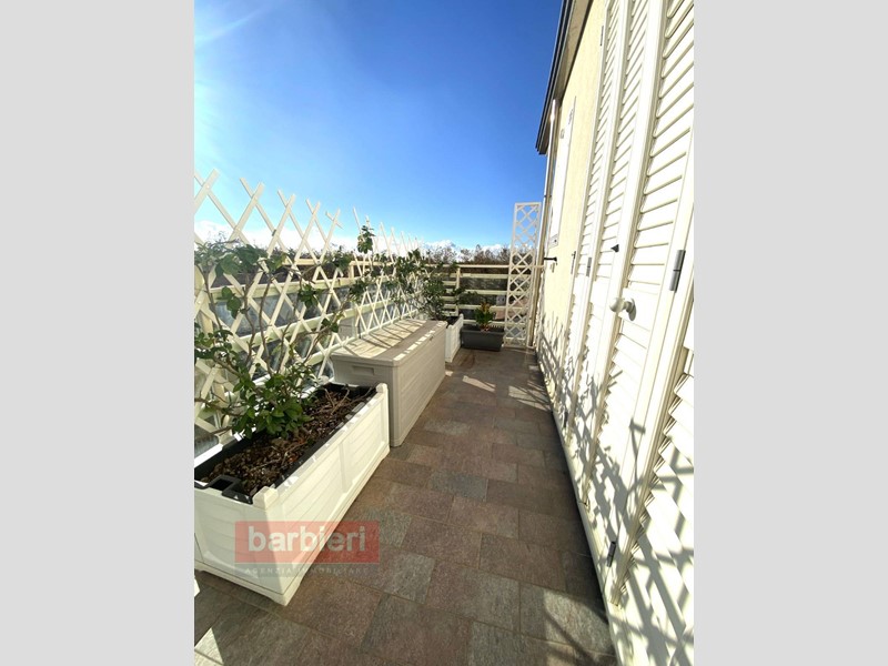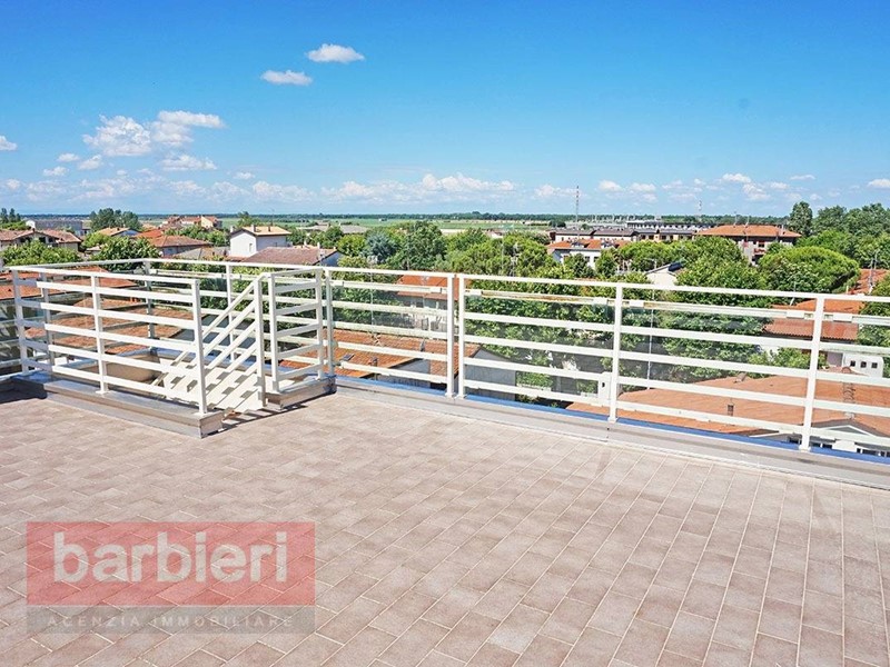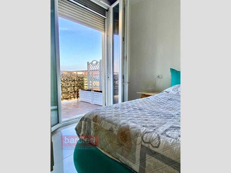 Affittiamo a Casal Borsetti, vicinissimo al mare e al porto turistico, in piccolo complesso condominiale con ascensore e di nuova costruzione, attico con vista mare. L'immobile, disposto su due livelli, è composto da soggiorno con angolo cottura, camera da letto, studio, disimpegno, bagno e ampi balconi sui tre lati con accesso diretto da ogni ambiente. Una scala di design collega l'appartamento al lastrico solare di 70 mq. con vista panoramica a 360° attrezzato con angolo cottura e doccia.