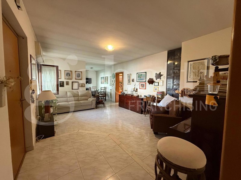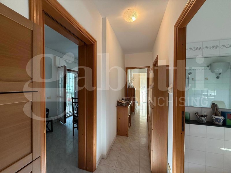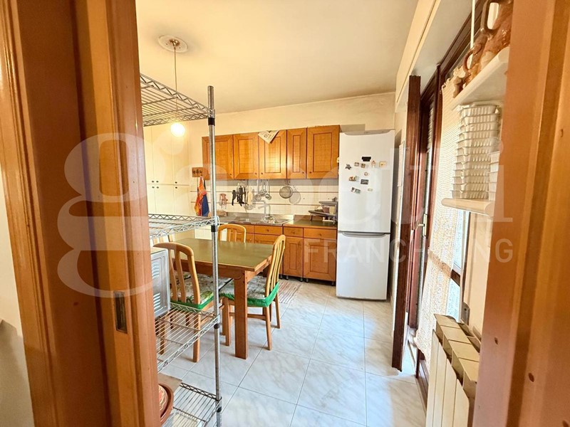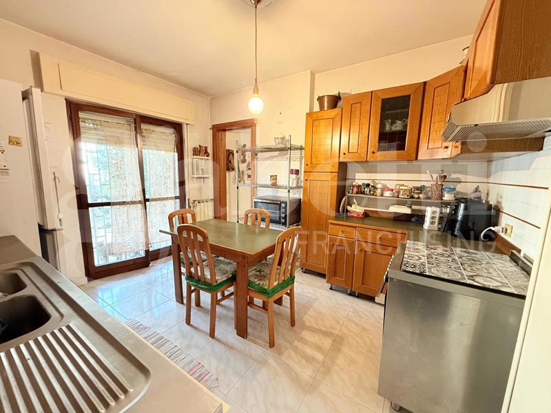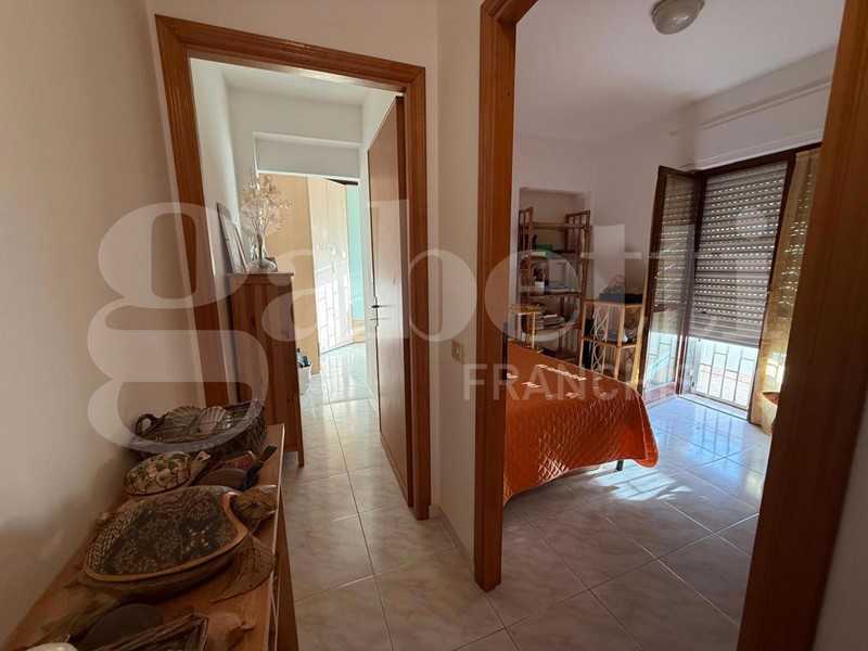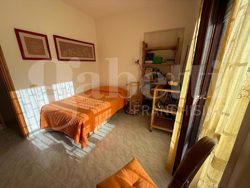 La casa di 105 mq calpestabili è situata nella rinomata zona, denominata Santa Barbara, vanta di un ottima esposizione su quattro lati con vista mare e monti, che permette di beneficiare della luce naturale durante tutto il giorno. Entrando nell'appartamento ci delizia un ampio soggiorno con camino attualmente non in uso, cucina abitabile con armadio a muro adibito a lavanderia; attraverso un disimpegno accediamo alla zona notte, dove troviamo una spaziosa camera da letto matrimoniale con armadio a muro e bagno interno, due camerette e un secondo bagno con vasca. Completa la proprietà un box auto di ampia metratura con comodo spazio di manovra. La casa è dotata di impianto di riscaldamento autonomo a metano, portone blindato, grate, tapparelle in alluminio che garantiscono comfort e funzionalità. In buone condizioni interne, con materiali originali dell'epoca di costruzione, l'appartamento è libero e pronto per essere abitato. La posizione strategica, vicina a servizi principali, negozi, bar, farmacia, scuole, rende questa soluzione abitativa perfetta per chi cerca comfort e comodità come abitazione principale. Le ultime foto sono realizzate con AI per esaltare le potenzialità dell'immobile.