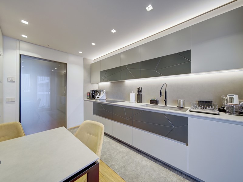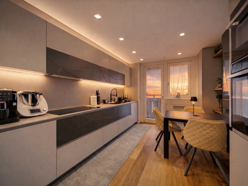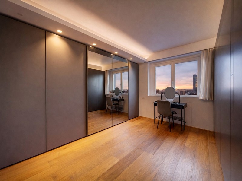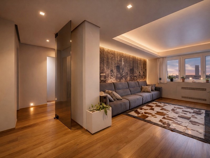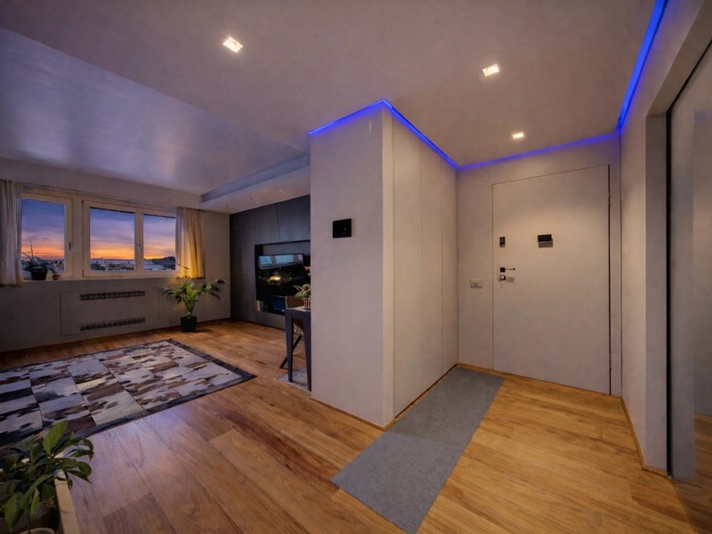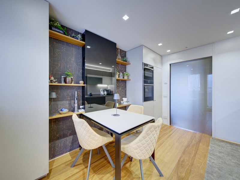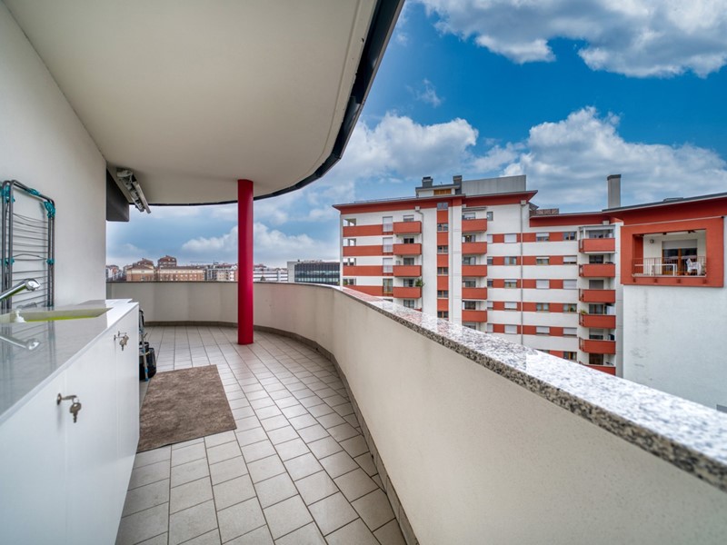 propone in vendita in stabile GEFIM di recente costruzione un quadrilocale finemente ristrutturato posto al 6° piano con vista panoramica e cosi composto: ingresso, cucina abitabile con terrazzo angolare, 2 camere da letto, un bagno con vasca e un secondo bagno con doccia entrambi finestrati. L'immobile e' provvisto di VMC, tapparelle e tende motorizzate. Deumidificatore presente in tutta la casa. Completa la proprietà una cantina di pertinenza e un box auto doppio in lunghezza situato al piano - 1 a ?. 50.000,00. Misure box doppio: apertura porta 2,90mt, larghezza interna 3,11mt, lunghezza 10mt. Motorizzato