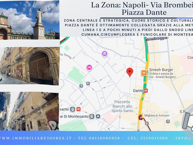 Open House esclusivo - Via Brombeis - a pochi passi da Piazza Dante | and euro; 210.000 and euro; \nSabato 7 Marzo 2026, dalle Ore 11:00 alle ore 12:00\n\nIn posizione centralissima, a ridosso di Piazza Dante, proponiamo in vendita un immobile completamente ristrutturato nel 2025, mai abitato dopo la ristrutturazione, pronto ad accogliere i suoi primi proprietari o a diventare un investimento immediatamente redditizio.\n\nL'appartamento, di 84 mq catastali, è posto al terzo piano senza ascensore di uno stabile d'epoca e si distingue per la sua doppia esposizione: affacci tranquilli sull'interno palazzo e affaccio esterno su Via Bagnara, che dona luce e carattere agli ambienti.\n\nL'ingresso si apre su un ampio soggiorno con angolo cottura a vista, uno spazio moderno e accogliente, servito da finestra su interno palazzo e bagno padronale.\nLa zona notte è composta da una camera da letto con balcone e bagno in camera, pensato per garantire comfort e privacy.\n\nUn disimpegno con armadiature su misura accompagna alla scala di accesso al soppalco interno, con altezza di 2 metri, uno spazio versatile ideale come studio, area relax o zona notte aggiuntiva.\n\nLa posizione rappresenta un valore assoluto: Piazza Dante, Montesanto, Via Toledo e il centro storico sono tutti facilmente raggiungibili a piedi, così come metropolitana, università, negozi e servizi di ogni genere.\nSoluzione ideale sia come abitazione principale sia come investimento, grazie alla forte richiesta locativa della zona.\n\n and #128205; Una casa nuova nel cuore storico di Napoli, dove centralità, comfort e stile si incontrano.\nVisita l'immobile solo su invito\nPartecipa al nostro evento esclusivo Open House sabato 7 Marzo 2026, dalle ore 11:00 alle 12:00 L'accesso è riservato e su prenotazione. Registrati subito per non perdere l'occasione di visitare questa splendida soluzione abitativa.\nPosti limitati. Prenota ora la tua visita con 360RES Immobiliare.\nContattaci subito per ricevere il link di registrazione all'Open House e ottenere in anteprima la scheda completa con foto, planimetria e dettagli!\nChi partecipa all'Open House riceverà in omaggio un'esclusiva guida su Come Vendere Casa a Napoli in sole 360 Ore al Suo Massimo Valore!\n\nVuoi Candidare anche la Tua Casa da vendere al sistema 360RES e scoprire se può superare la selezione per essere la prossima Casa più appetibile di Napoli relativamente alla sua Zona e Tipologia?\n\nPuoi semplicemente contattarci da qui oppure iniziare compilando l' utile e dettagliato form su https://bit.ly/valutazione_on_Line\n\nVendi | Compra | Progetta | Ristruttura | Abita con\n\n360RES - il punto di riferimento per Ogni esigenza immobiliare\nTel: 08118086858\nCel: 3519011989\nmail: info@360res.it\nwww.360res.it\nwww.immobiliare360res.it\n\nL'appartamento sarà visibile esclusivamente con la Formula #openhouse #360RES fissato per il Giorno Sabato 07/03/2026 dalle h: 11:00 ALLE ORE 12:00\nmaggiori dettagli ed informazioni attraverso il nostro canale Youtube @360res e le nostre pagine Social che vi invitiamo a seguire per restare aggiornati cercandoci con l'Hashtag #360RES\n\n[Importante]: Essendo questa l'Unica Data in cui sarà possibile visionare l'immobile Vi suggeriamo di venire fin da subito accompagnati da tutte le persone che potranno supportarVi nell'eventuale decisione di acquisto, siano essi parenti, familiari, amici, tecnici o consulenti.\n\nLe informazioni riportate cosi come le immagini sono puramente indicative e non costituiscono elemento contrattuale - Maggiori Dettagli: Citofono, Balconi, Doppia esposizione, Esposizione esterna