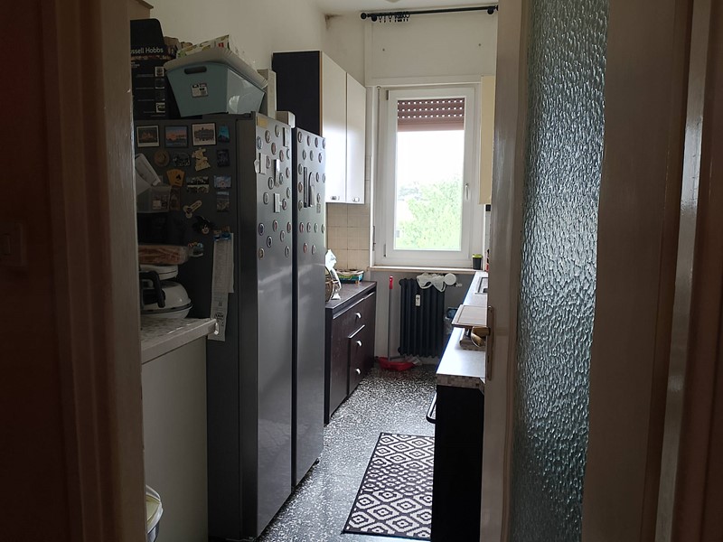 Alloggio al piano terzo (quarto fuori terra) composto da ingresso, tre camere, cucina, bagno e ripostiglio, cantina al piano seminterrato e autorimessa al piano terreno