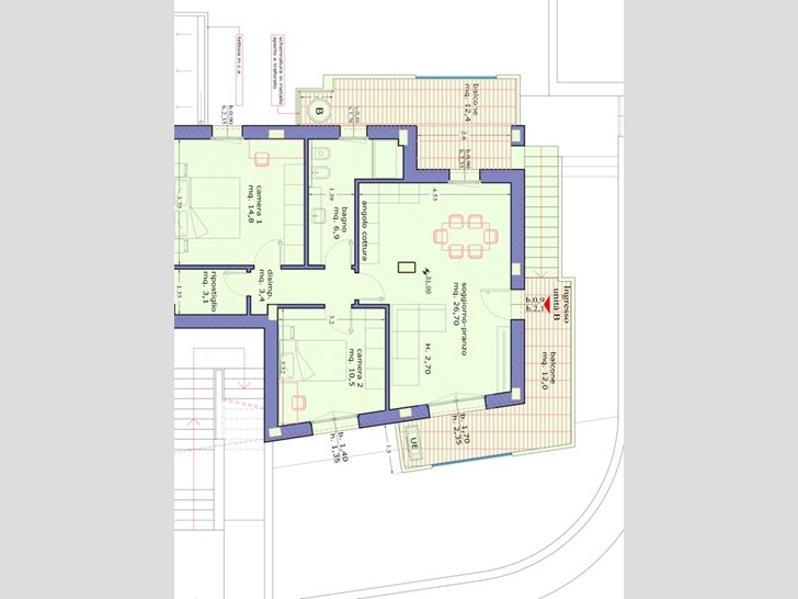 - Due balconi abitabili (8,6 mq e 6,5 mq) e scala esterna di ingresso, disposti su 3 lati dell’appartamento