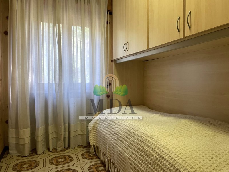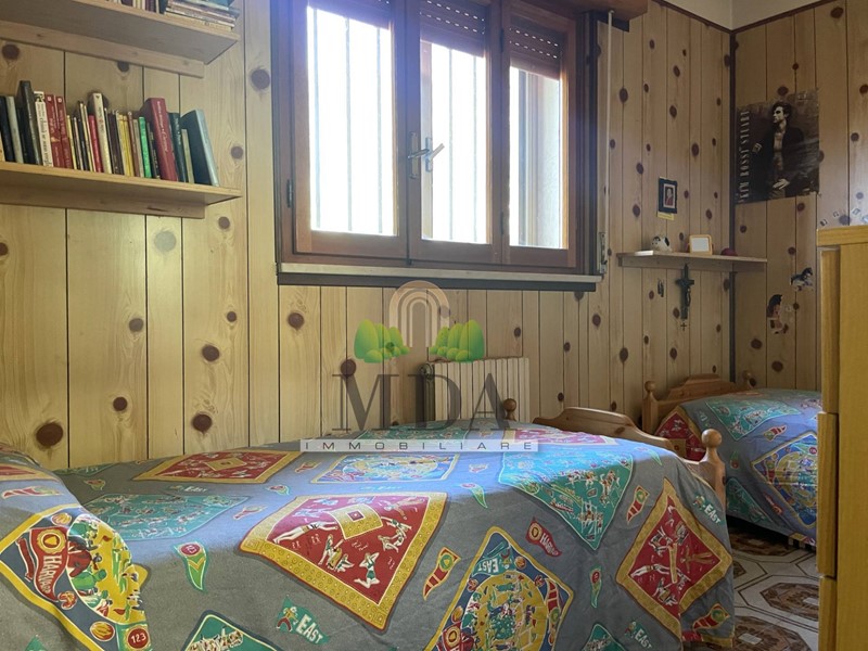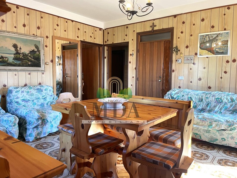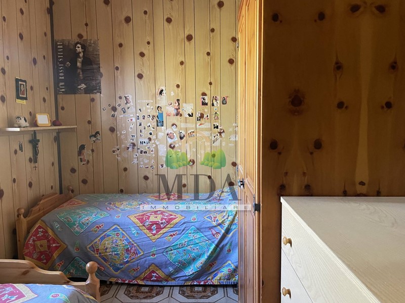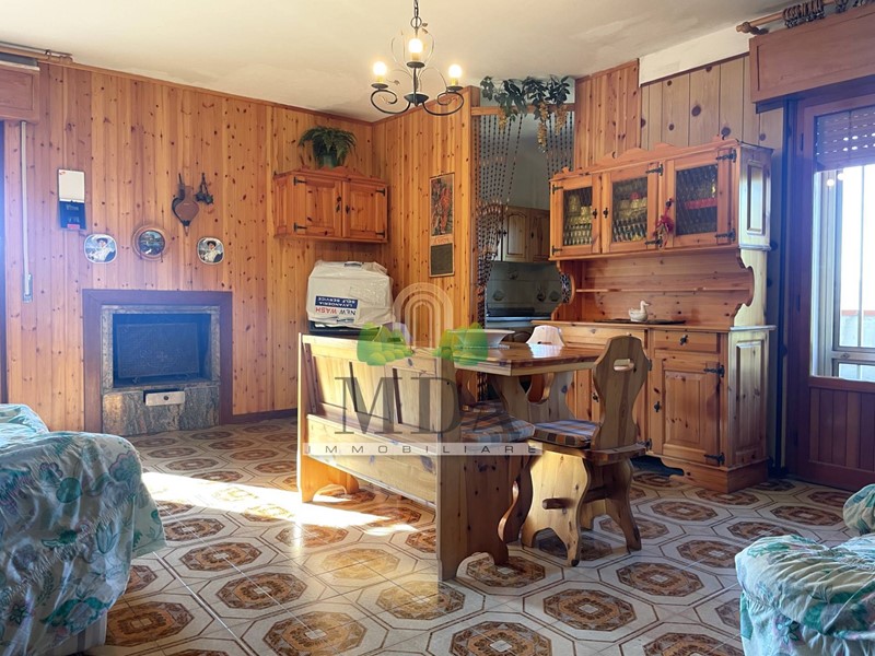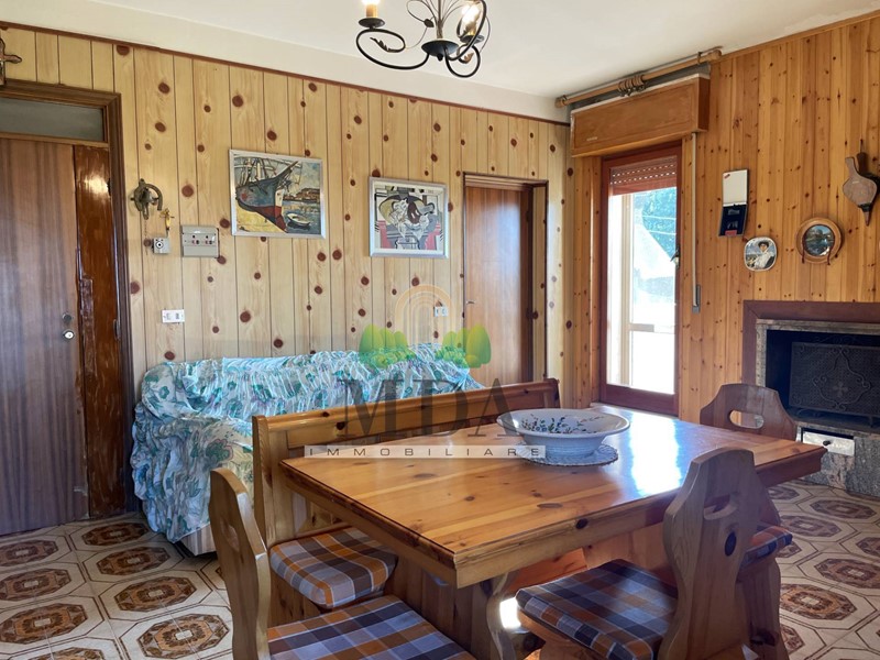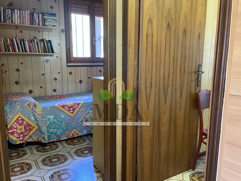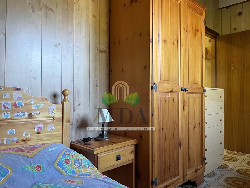 L'appartamento, 85 mq. circa, si trova al secondo piano ed è composto da: ingresso, soggiorno con camino, cucinotto, disimpegno, camera matrimoniale, due camere singole, bagno con doccia e finestra.