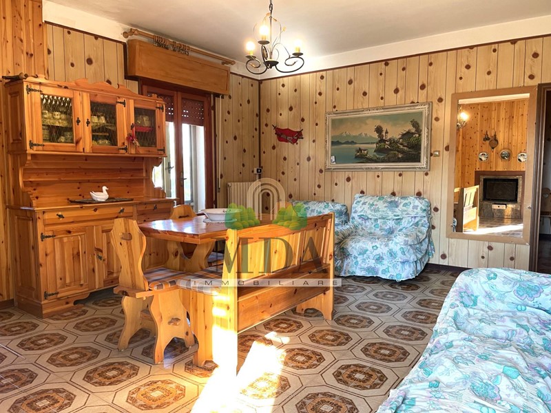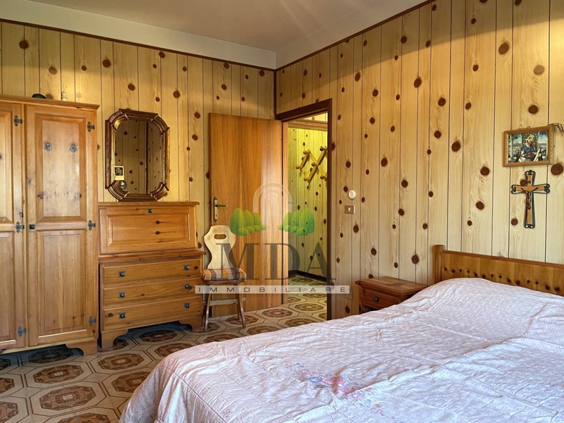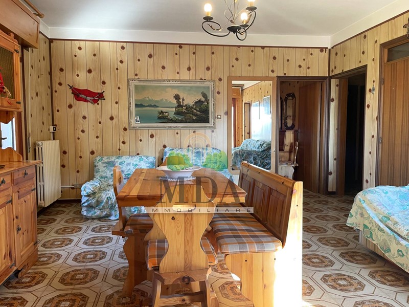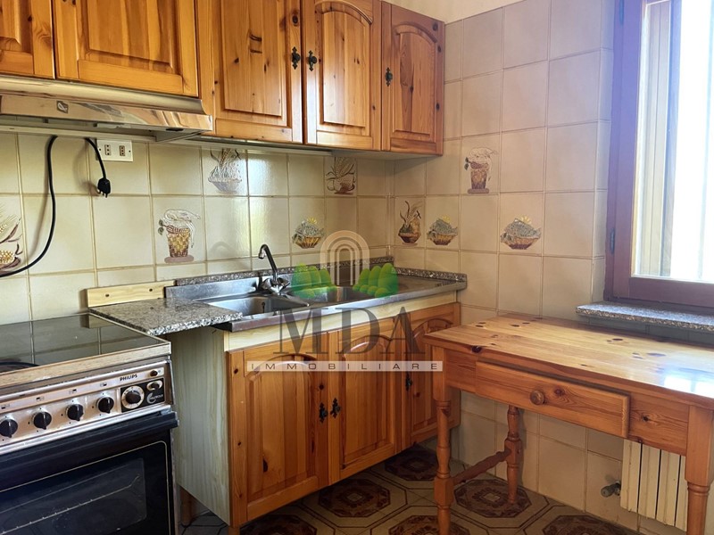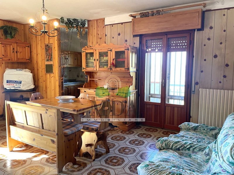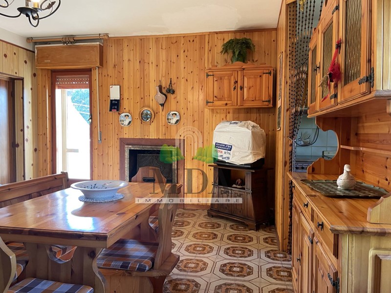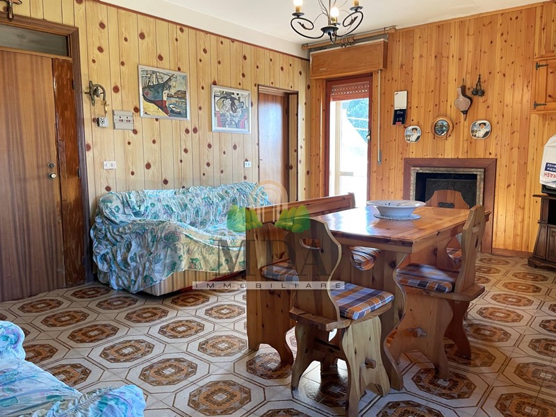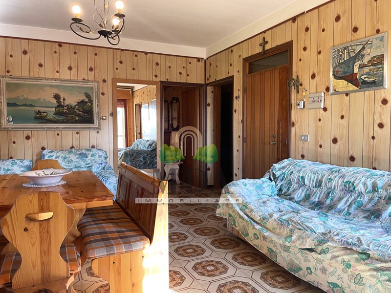 L'appartamento, 85 mq. circa, si trova al secondo piano ed è composto da: ingresso, soggiorno con camino, cucinotto, disimpegno, camera matrimoniale, due camere singole, bagno con doccia e finestra.