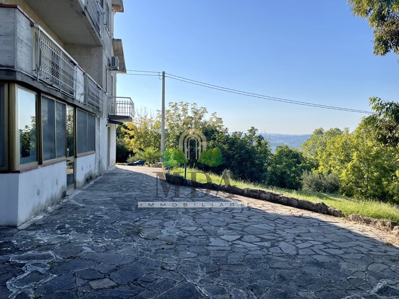 Completano la proprietà una cantina di 20 mq. circa posta al piano terra e un terreno circostante di 2.980 mq. circa, in parte scosceso.