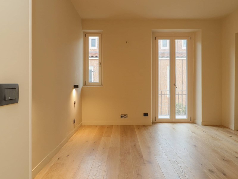 Lappartamento gode di doppio affaccio con balconi su entrambi i lati ed è estremamente luminoso.