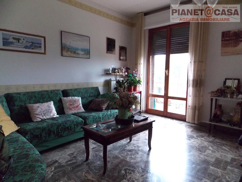 L' appartamento è composto da ingresso su disimpegno, ampio e luminoso soggiorno, cucina abitabile con cucinotto e camino, corridoio, tre camere da letto di cui due matrimoniali ed una doppia, due bagni di cui uno con vasca ed uno con box doccia, oltre a quattro balconi a livello.