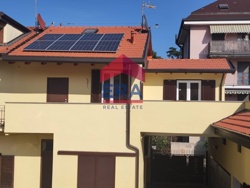 Desideri un appartamento con terrazzo appena ristrutturato e in classe energetica A2, in posizione tranquilla ma centrale a Rho? E per giunta senza spese condominiali? ERA Fides presenta una soluzione semindipendente su due livelli che potrà realizzare il tuo sogno. Si tratta di un appartamento al primo piano, in tranquillo e suggestivo contesto di corte, composto da ingresso, soggiorno con cucina a vista, disimpegno, bagno finestrato con doccia e camera matrimoniale al piano primo, e da uno spazio aperto in balconata collegato al soggiorno da una bella scala lineare in metallo e legno, dotato di un piccolo secondo bagno, anch esso finestrato. Il soggiorno e la camera matrimoniale si affacciano su di un ampio terrazzo di 100 mq, ideale per i momenti di gioco o relax, o per ricevere gli amici. L ambiente aperto al secondo livello può essere utilizzato sia come cameretta, sia come studio o camera per gli ospiti. Le finiture sono molto contemporanee, e la ristrutturazione ha adottato le più moderne tecnologie: impianto fotovoltaico, riscaldamento a pavimento radiante con pompa di calore, aria condizionata in soggiorno e in camera, serramenti in pvc pesante con triplo vetro e apertura a vasistas, e videocitofono. La soluzione, volendo, può essere completata da un ampio box, quotato separatamente, che, grazie allaltezza, può essere dotato di soppalco portante ad uso ripostiglio. Questa unità immobiliare non ha spese condominiali, ed è immediatamente disponibile. La zona è estremamente centrale, dispone di tutti i servizi ed è collegata molto bene con Milano, in quanto la stazione di Rho si trova nelle immediate vicinanze. Disponibile box a 15.000