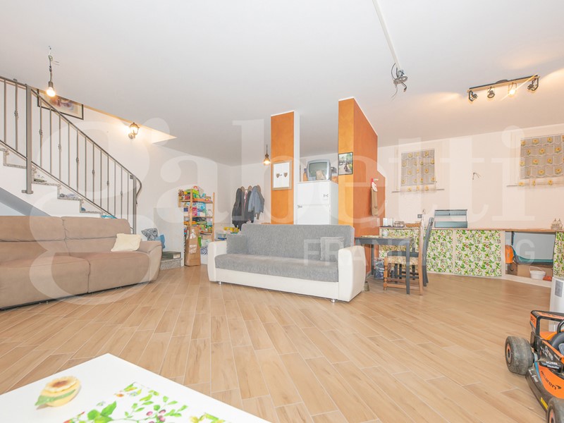 L'unità immobiliare è collegata internamente da comoda scala in muratura al piano seminterrato, dove troviamo un locale di sgombero adibito a tavernetta, attualmente ambiente unico, oltre a servizio lavanderia.