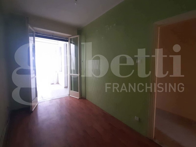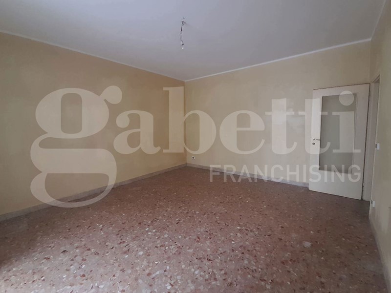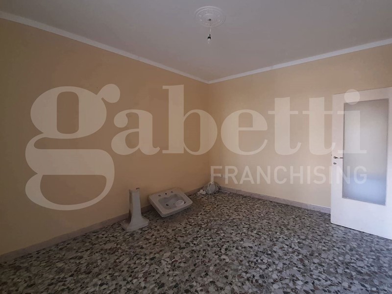 La casa, da ristrutturare, ha ingresso sul corridoio, salone con ampia porta finestra verso il balcone a petto, camera singola (che può essere adibita a studio o salotto) con grande finestra, camera da letto con finestra, cucina con accesso al grande balcone verandato (dove è ricavata anche la pilozza e lo spazio lavatrice), doppio servizio con finestra e doccia, bagno principale con finestra e vasca, seconda camera singola con accesso al balcone verandato, camera matrimoniale con accesso al balcone verandato.