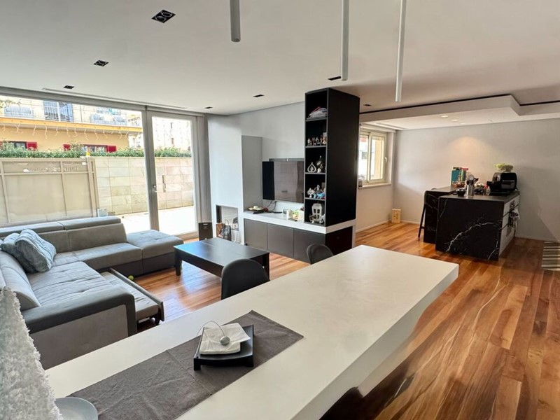 Zona semicentrale, nei pressi della parrocchia di «S.Anna», proponiamo bellissimo appartamento con ingresso indipendente facente parte di un complesso condominiale di recente edificazione. L’appartamento posto al piano terra, è composto da ingresso pedonale e carrabile attraverso cancello automatico in ampia veranda. Generosa zona living con elegante termo camino a gas elettrico, isola e cucina a vista con piano ad induzione. Tramite un pratico disimpegno si accede alla zona notte composta da vano letto matrimoniale con bagno in camera a scomparsa e armadio incassato, secondo bagno ed ulteriore vano letto.