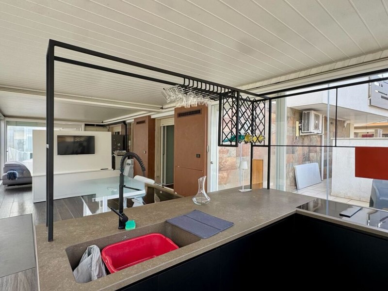 Tramite la zona notte si ha accesso ad un’altra grande pertinenza esterna di proprietà dove c’è il fiore all’occhiello di questo immobile: bellissimo gazebo con chiusura automatizzata e vetrate termiche panoramiche, con ulteriore cucina e zona living. L’appartamento è caratterizzato da rifiniture di pregio, inoltre è munito di riscaldamento a pavimento e aria condizionata caldo/freddo canalizzata. Completa la proprietà un pratico vano lavanderia posto nella veranda, ultimo non per importanza il box auto posto al piano seminterrato di 27 mq. L’immobile è in perfetto stato di manutenzione e viene venduto completo di arredo