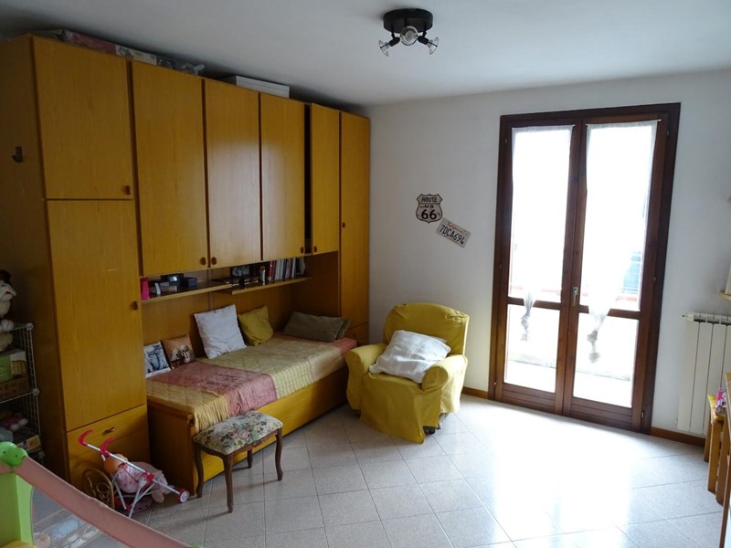 Con una superficie di ca 130 mq oltre accessori, gode di un'ottima distribuzione degli spazi interni, arricchita da un ingresso esclusivo al piano terra e di un portico di 25 mq con zona lavanderia che si affaccia sul resede tergale di circa 120 mq con passo carrabile e posti auto privati.