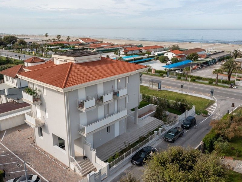 MARINA DI PIETRASANTA FRONTE MARE prestigioso appartamento FRONTE MARE di piccola ed elegante palazzina con ascensore, di recente costruzione (2023), con posto auto esclusivo. L'immobile, con finiture di alto livello, si trova al Piano Primo e si compone di: ingresso, sala con cucina a vista e terrazza fronte mare, lavanderia, due camere con bagno privato oltre ad una camera media e un terzo bagno completano l'appartamento. Posto auto esclusivo. Immobile dotato di riscaldamento a pavimento, clima, solare termico, predisposizione impianto di domotica. Bellissima location di gran pregio.