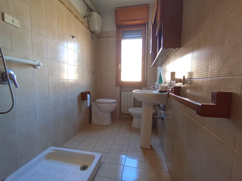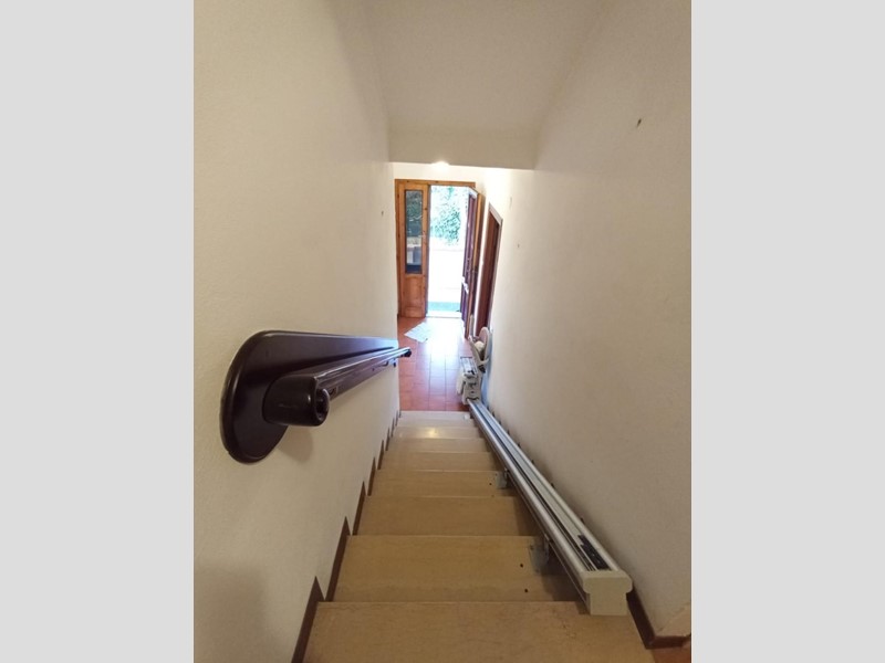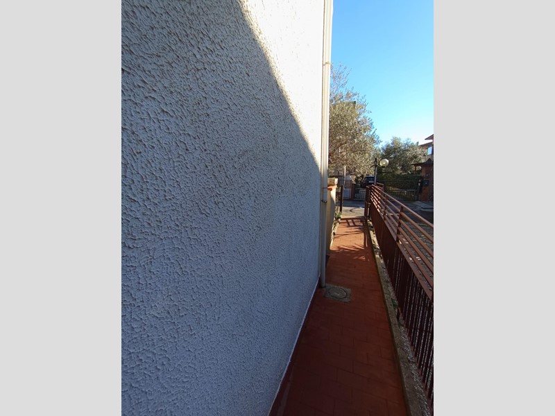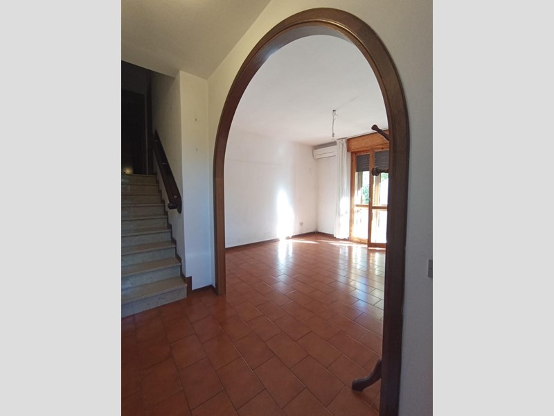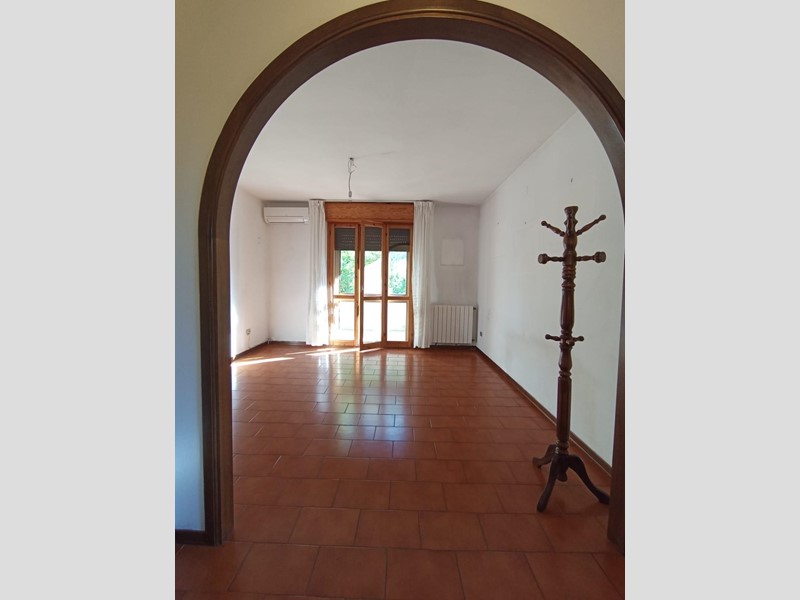 Al piano rialzato di una palazzina quadrifamiliare costruita negli anni 80 proponiamo appartamento con ingresso indipendente. Tramite cancello pedonale e carrabile automatico si accede all'interno della proprietà privata dove troviamo un piccolo resede in parte a verde e lo spazio per poter parcheggiare l'auto di fronte il garage. L'ingresso di casa è leggermente rialzato di qualche scalino e tramite un piccolo balcone raggiungiamo il portone di casa. L'ingresso è aperto sul soggiorno corredato di balcone che si ricollega con il resede privato. La cucina abitabile con balcone resta separata e funzionale. Tramite scala interna raggiungiamo il piano superiore dove troviamo le due camere da letto ( matrimoniale e singola) di cui una dotata di balcone, il ripostiglio, il bagno con doccia e finestra ed una armadiatura a muro sul disimpegno. L'abitazione si presenta in buono stato di manutenzione generale anche se necessita di interventi di ammodernamento. Il contesto è residenziale e tranquillo. L'appartamento è dotato di infissi in legno con vetro singolo corredati di doppio infisso, aria condizionata caldo/freddo. Disponibile in tempi brevi.