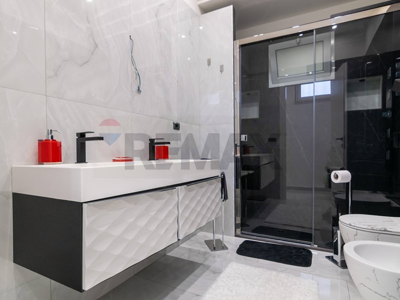 Servizi: Secondo bagno di rappresentanza con moderna doccia e doppio lavabo.