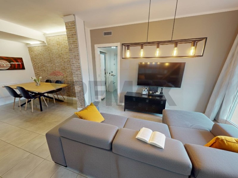 Zona Giorno: Ampio living luminoso con cucina a vista, con accesso diretto al primo grande balcone vivibile.