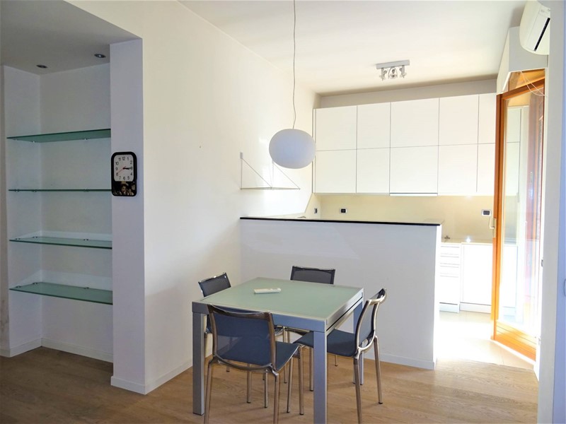 La zona giorno si sviluppa in un luminoso open space con cucina completa di elettrodomestici e lavastoviglie - tutto mai utilizzato e accesso a un terrazzo perimetrale, ma ampio, di circa 20 mq, che affaccia sul verde parco Le Grazie, vero valore aggiunto della proprietà.