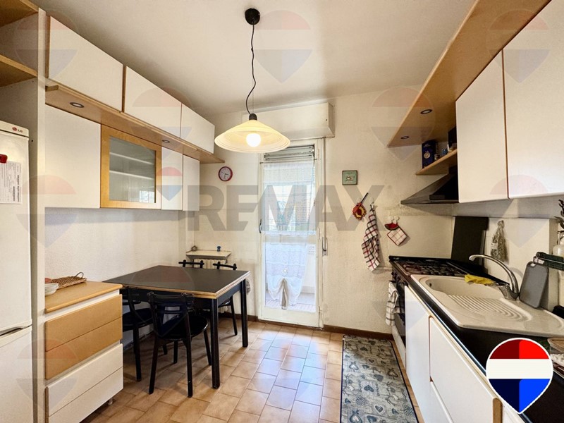 La disposizione interna è razionale e ben organizzata: lingresso introduce alla zona giorno, composta da cucina abitabile con balcone e soggiorno di generose dimensioni, anchesso dotato di balcone.