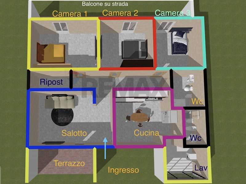 Limmobile è composto da tre camere da letto, due bagni, una zona comune con cucina abitabile, lavanderia e un ampio ripostiglio. Lappartamento si presenta in buone condizioni, funzionale e ben organizzato per la condivisione.