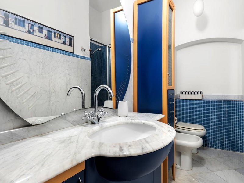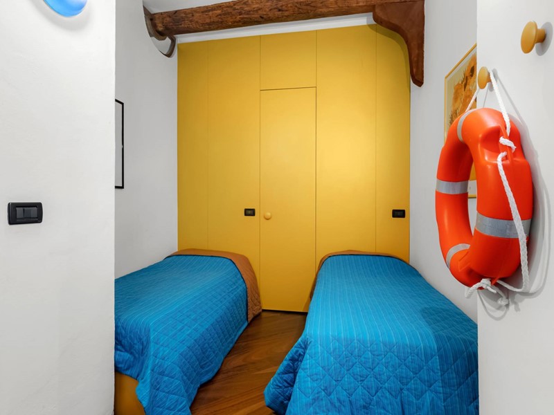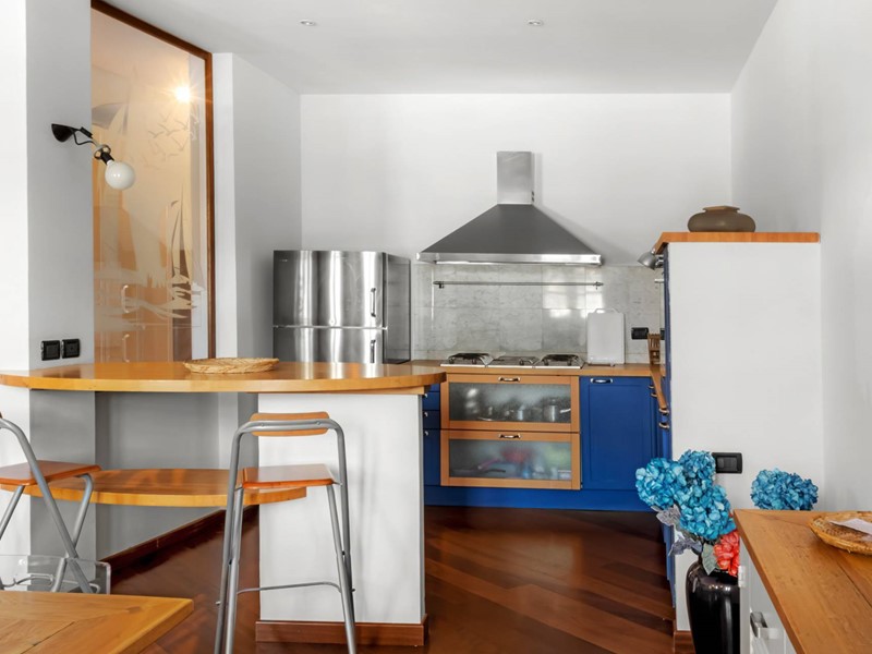 Labitazione si sviluppa con una distribuzione funzionale ed equilibrata. La zona living è luminosa, ampia, pensata per vivere e ricevere, con affacci diretti sul porto che valorizzano lintero ambiente. La cucina è ben integrata, pratica ma discreta, adatta sia alla quotidianità sia a soggiorni più prolungati. La zona notte comprende due camere da letto di dimensioni generose, entrambe servite da due bagni, oltre a cabine armadi che garantiscono comfort e organizzazione degli spazi.