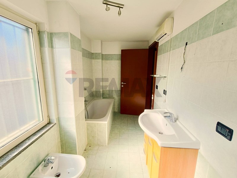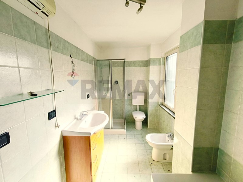 Il bagno, completo di sanitari, doccia e attacchi per la lavatrice, è anch'esso finestrato per una maggiore ventilazione e luminosità.