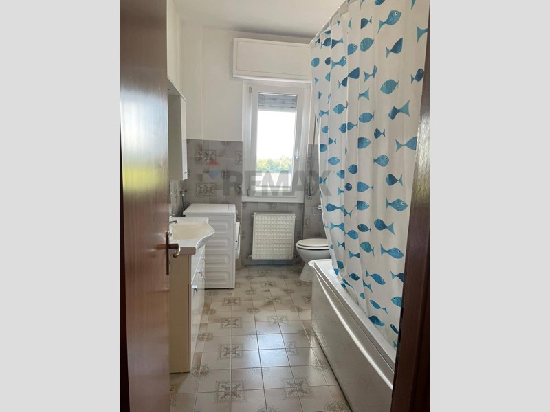 Il bagno finestrato, completo di tutti i sanitari e dei principali accessori, è dotato di vasca e attacco per la lavatrice.