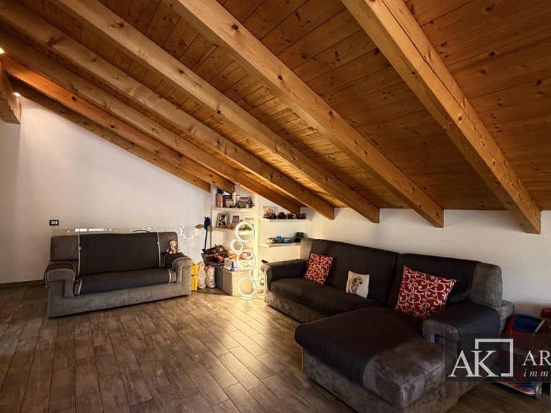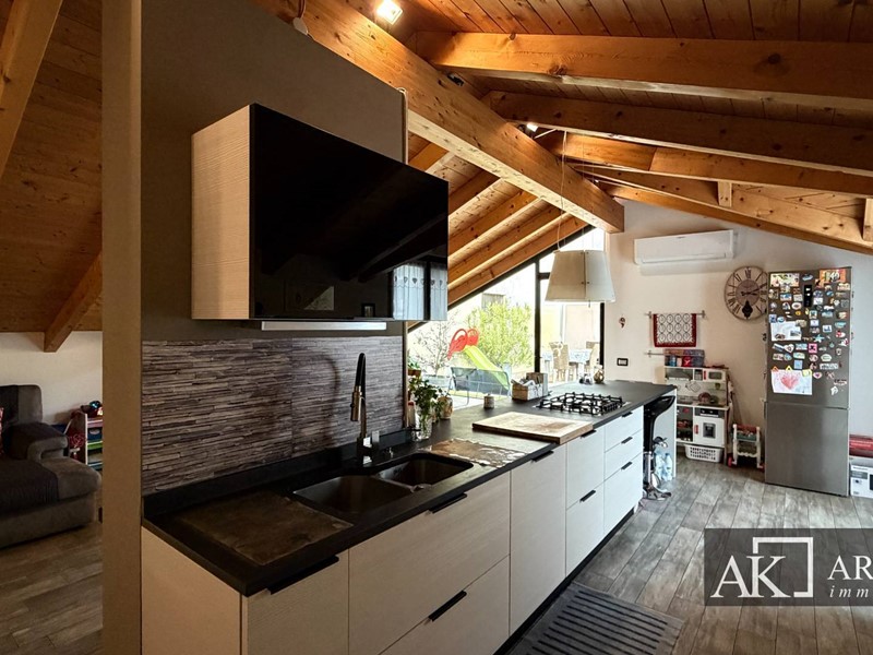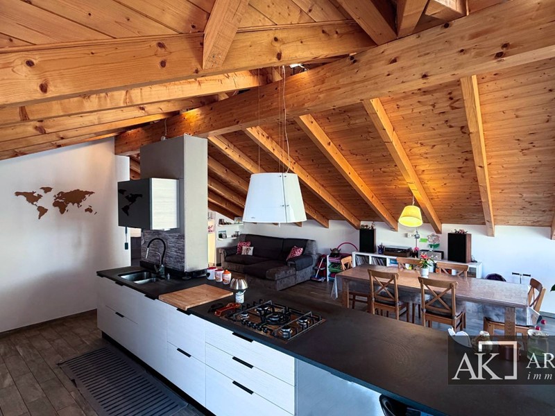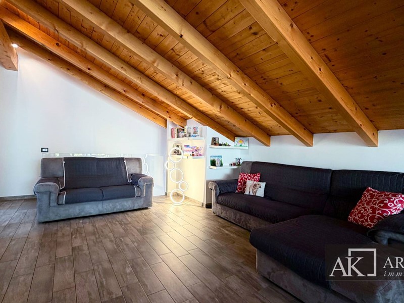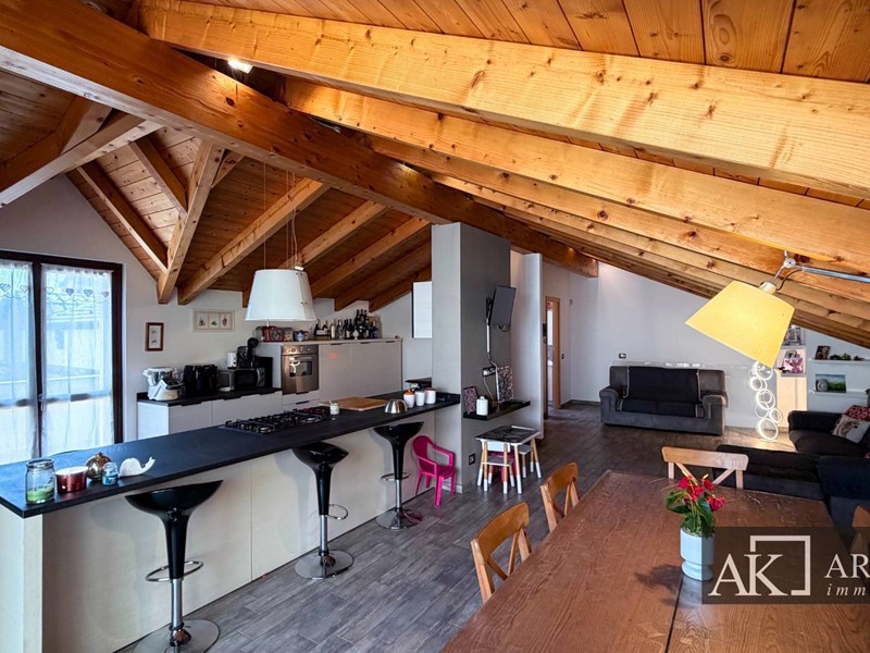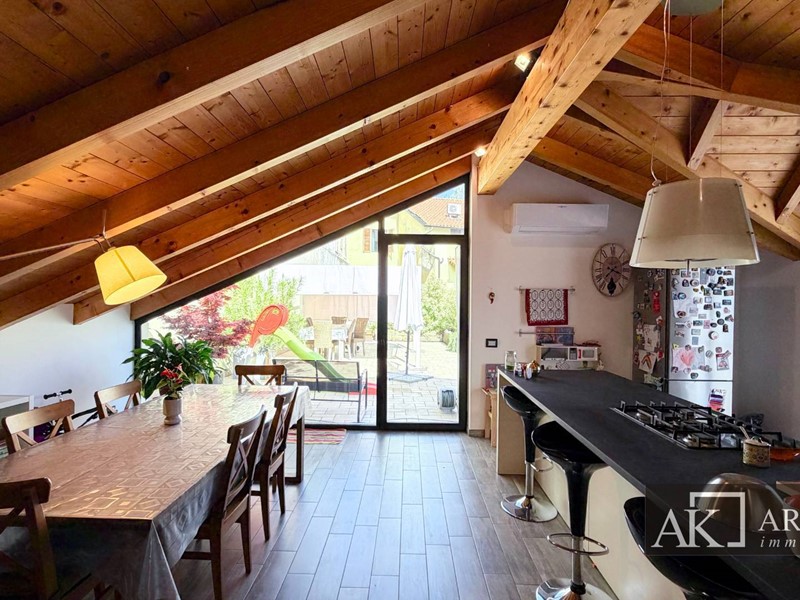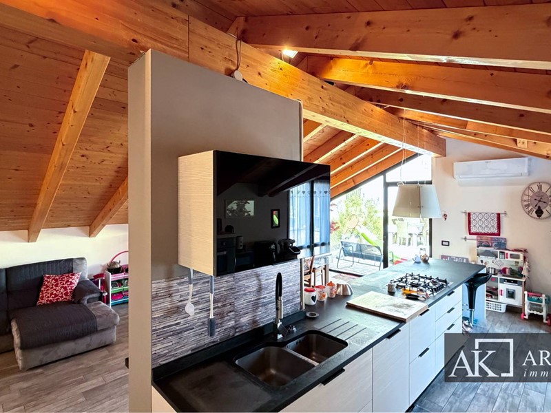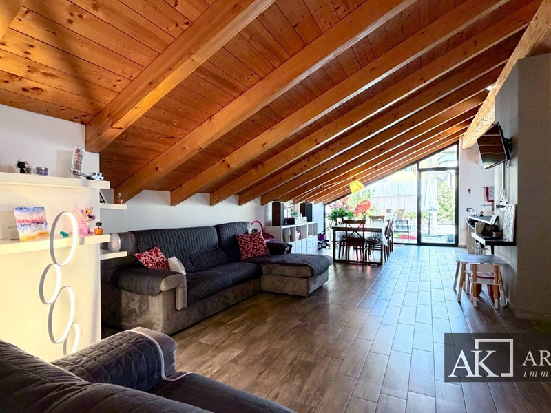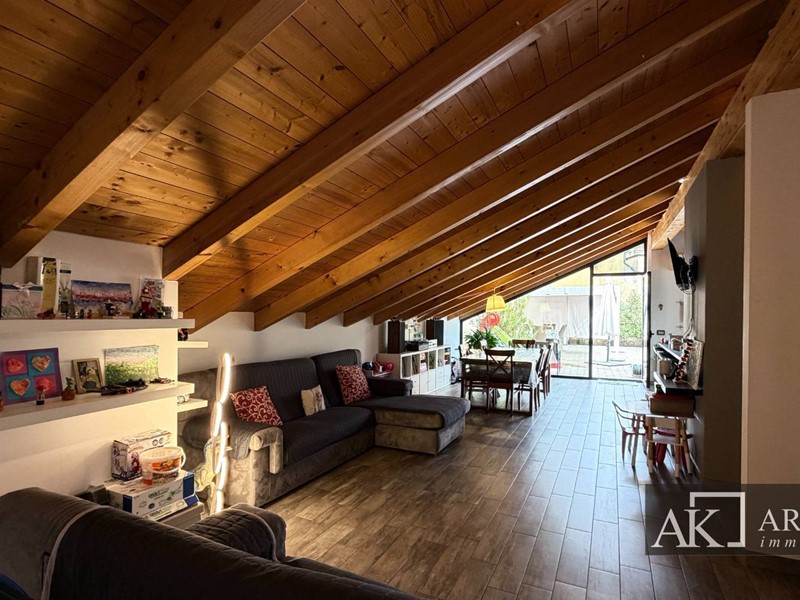 Tramite scala interna si accede al secondo piano mansardato, dove troviamo una grandissima zona giorno con cucina open space ad isola centrale, ambiente scenografico e conviviale, con affaccio diretto su uno splendido terrazzo scoperto di circa 60 mq, perfetto per pranzi allaperto, momenti di relax o convivialità. Il piano è inoltre dotato di bagno, lavanderia e pratico ripostiglio esterno.