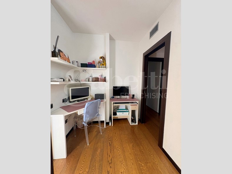 Un disimpegno conduce alla zona notte, composta da tre camere. Nello specifico troviamo una camera ad uso studio, una camera matrimoniale e una camera doppia dotata di cabina armadio, con accesso a una veranda esclusiva e bagno privato interno alla camera. Completa la zona notte un ulteriore bagno a servizio delle altre camere.