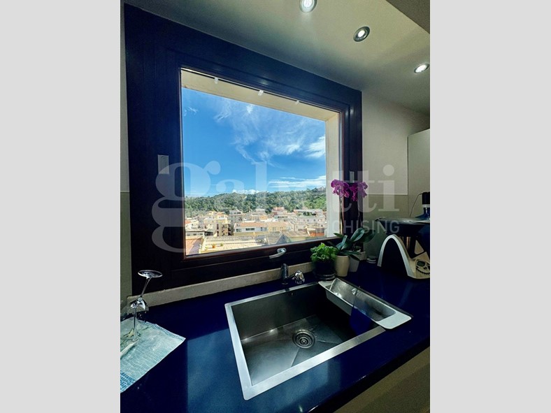 Completa la zona giorno una cucina abitabile con finestra, anch'essa con vista su Monte Urpinu, collegata a una seconda veranda attrezzata con area barbecue e zona lavanderia, oltre a un bagno di servizio.