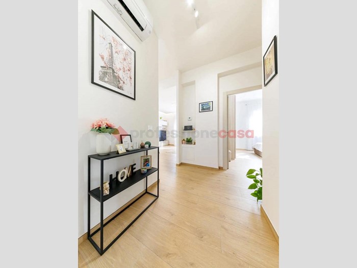 La ristrutturazione ha interessato ogni dettaglio: pavimentazione in gres porcellanato effetto parquet, infissi in PVC con doppio vetro e impianto di aria condizionata, a garanzia di comfort, efficienza energetica e qualità abitativa.