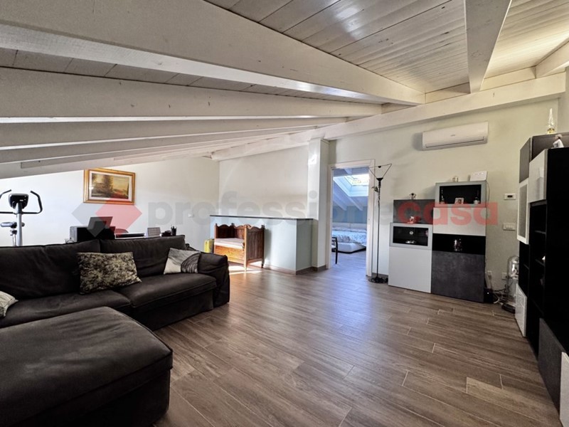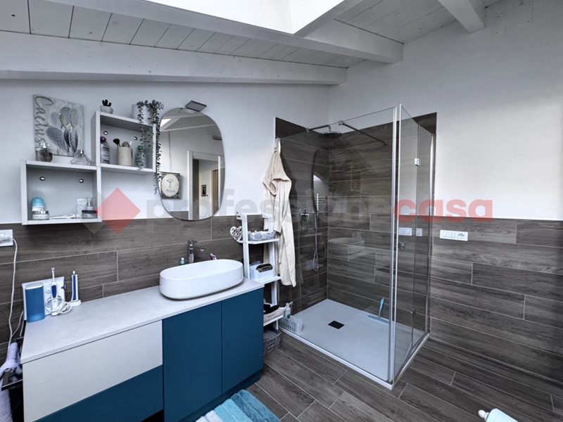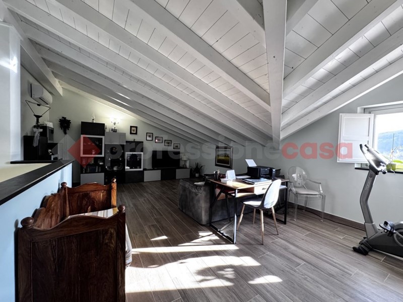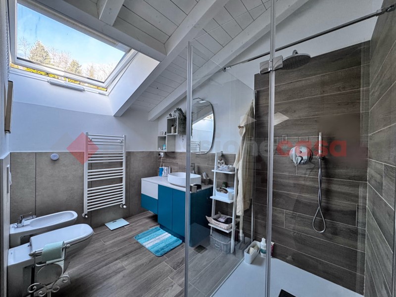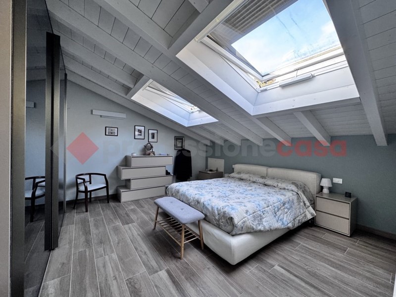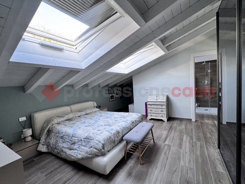 Salendo al piano superiore si apre un ampio locale luminoso, versatile e facilmente trasformabile in zona relax, area studio o spazio hobby. La zona notte ospita una splendida camera matrimoniale illuminata da due grandi velux elettriche, che regalano un'atmosfera ariosa e raffinata, oltre a un bagno en suite finestrato con box doccia.