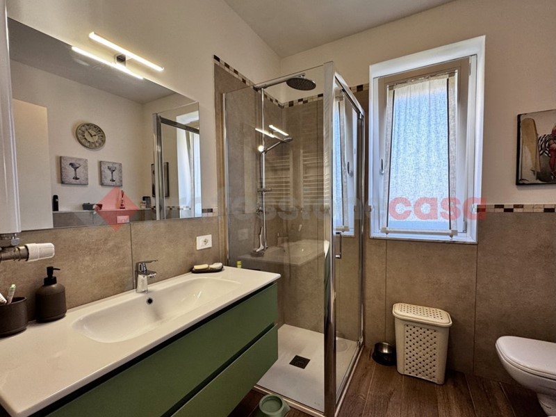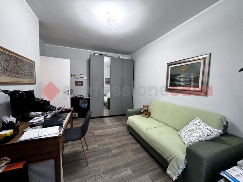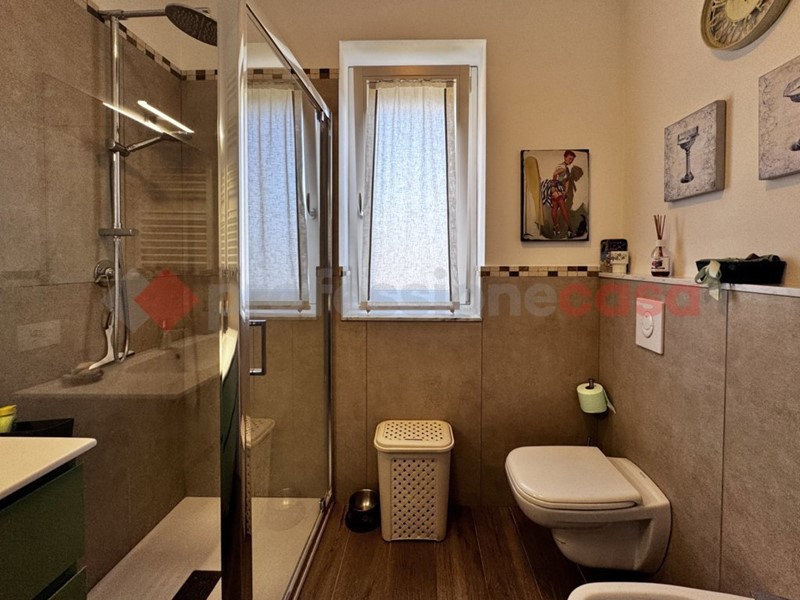 La zona giorno è completata da una cucina abitabile, funzionale e confortevole, con accesso a un terrazzino collegato a una prima camera attualmente adibita a studio. Sullo stesso piano troviamo un bagno moderno con box doccia, ben rifinito e accogliente.
