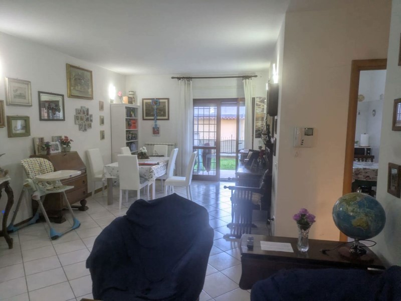 Monterotondo - Via Volturno, recente costruzione in palazzina in cortina, appartamento di 105 mq, con un giardino privato di 220 mq, composto di salone doppio, una cucina abitabile, due camere da letto, una cameretta, e due bagni e box auto di mq 27. La posizione centrale offre la comodità di avere tutti i servizi essenziali nelle vicinanze. Buono stato.