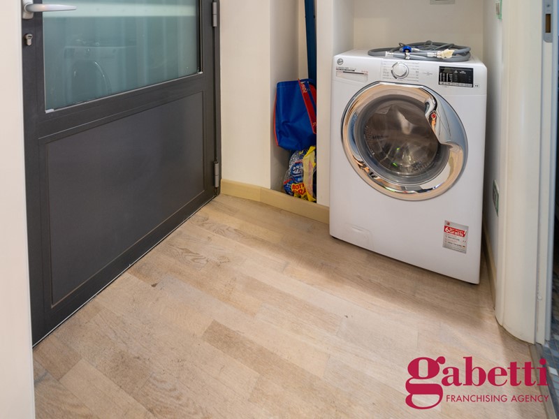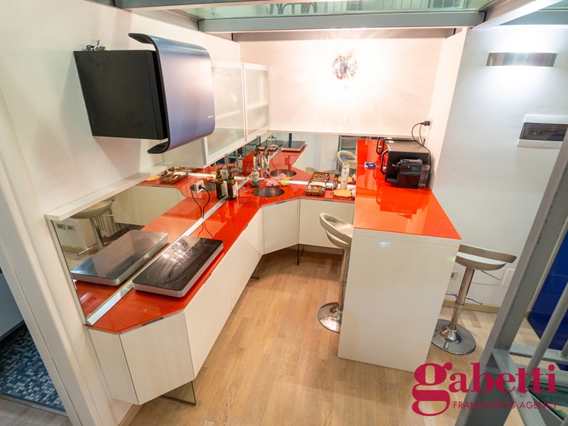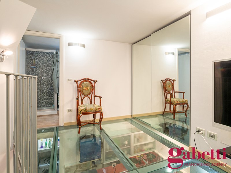 L'appartamento si compone su due livelli, rendendo comoda la convivenza di due inquilini: sotto zona giorno con divano letto e cucina elettrica, e sopra zona notte. Due bagni.