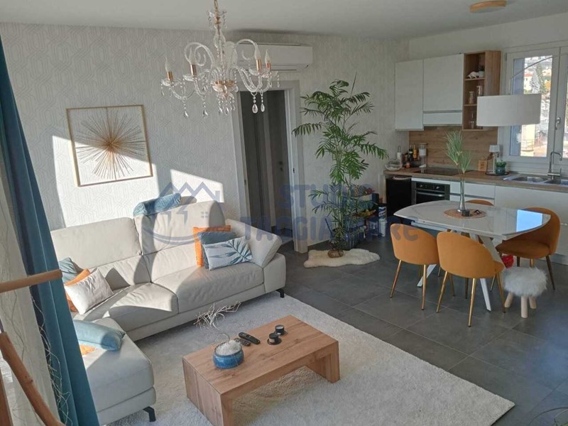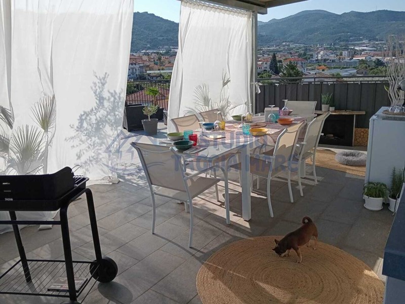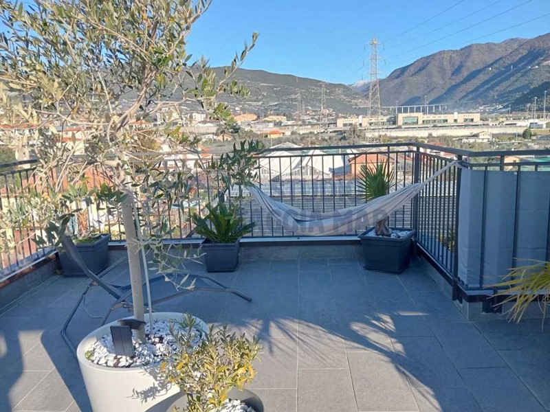 Nuova costruzione in vendita ad Arma di Taggia.A 1km dal mare,ultimo piano con ascensore composto da ingresso su sala con angolo cottura,due camere,bagno con doccia e finestra,dalla sola tramite una vetrata accediamo ad un terrazzo dove poter mangiare fuori con vista mare esposto a sud,il riscaldamento è a pavimento,casa in classe A+ finita nel 2022 completa la proprietà un'ampia terrazza di circa 65 metri attrezzata,un ampio box ed un posto auto scoperto.