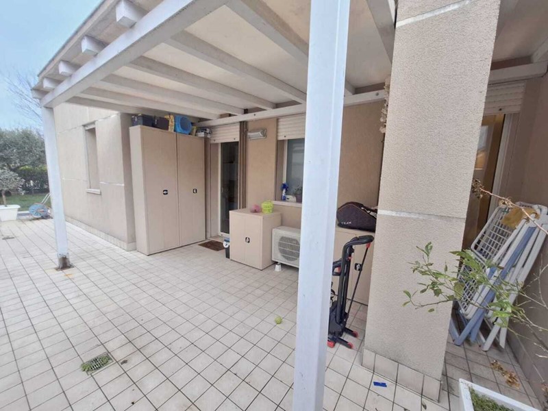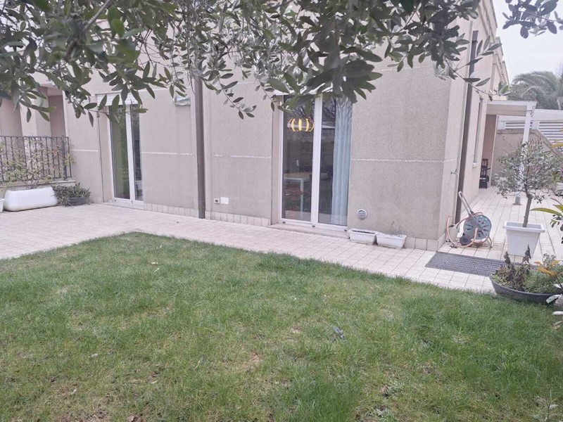 RIMINI VILLAGGIO PRIMO MAGGIO: In esclusiva vendiamo OTTIMO TRILOCALE MODERNO piano terra con GIARDINO. Ingresso su AMPIA SALA con cucina a vista con accesso al godibile scoperto esterno, in parte pavimentato e in parte in erba. Disimpegno che porta nel vano notte dove troviamo, 2 CAMERE, 2 BAGNI ed un funzionale ripostiglio ad uso cabina armadio. Al piano interrato troviamo un comodo GARAGE di circa 24Mq e la CANTINA di proprietà. Riscaldamento a pavimento, allarme, pergolato esterno. Il tutto si presenta in PERFETTO STATO, curato nei dettagli. Euro 325.000 Rif.1288