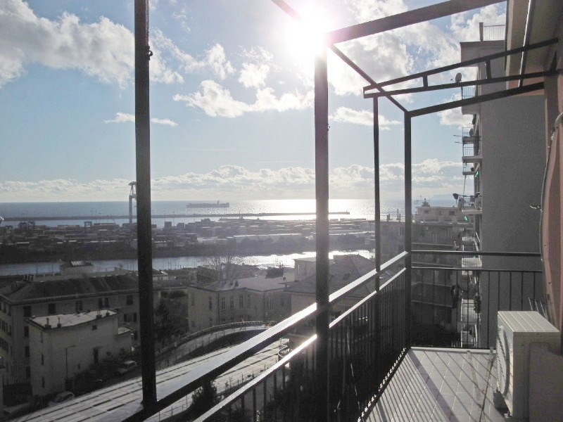 Genova Prà, vendiamo in zona panoramica con totale vista mare, servita asilo/scuole, negozi e servizi, alloggio in edificio con parti comuni tetto,facciate, balconi ristrutturate (possibili agevolazioni fiscali); piano alto e luminosissimo, ambienti da riordinare, impianto condizionamento; composto da: ingresso/corridoio, due camere, cucina vivibile, bagno finestrato, grande balcone. Compreso locale cantina. Certificazione energetica: F – EP gl,nern 257,05 kwh/mq anno. Alinghi R.E. srls – mail: info.alinghire@gmail.com - tel. 333 2356265.