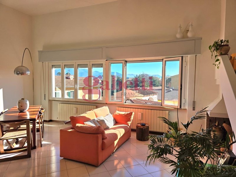 Le scale presenti nel soggiorno conducono alla soffitta ad uso ripostiglio e alla meravigliosa terrazza che permette di ammirare, sopra i tetti del centro, il panorama dai Monti Pisani e le Alpi Apuane fino al mare..