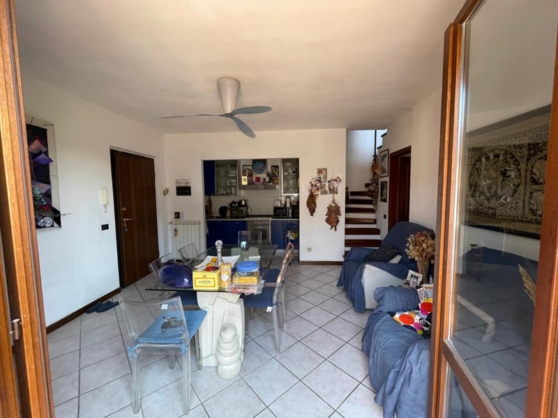 soggiorno con cucinotto separato e terrazza, disimpegno, camera con terrazza, cameretta e due bagni a piano primo; ampio locale open space con bagno e terrazza coperta al piano sottotetto.