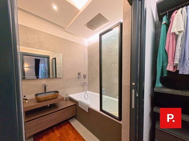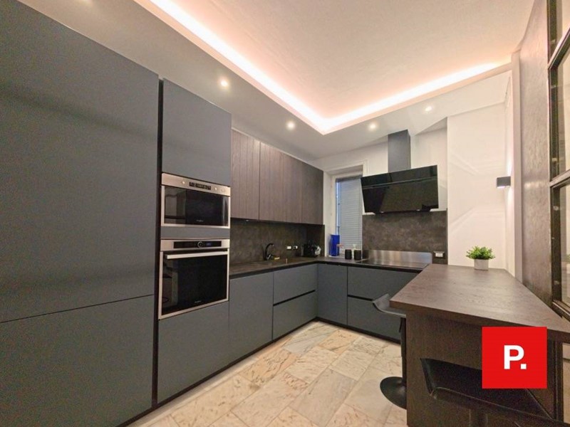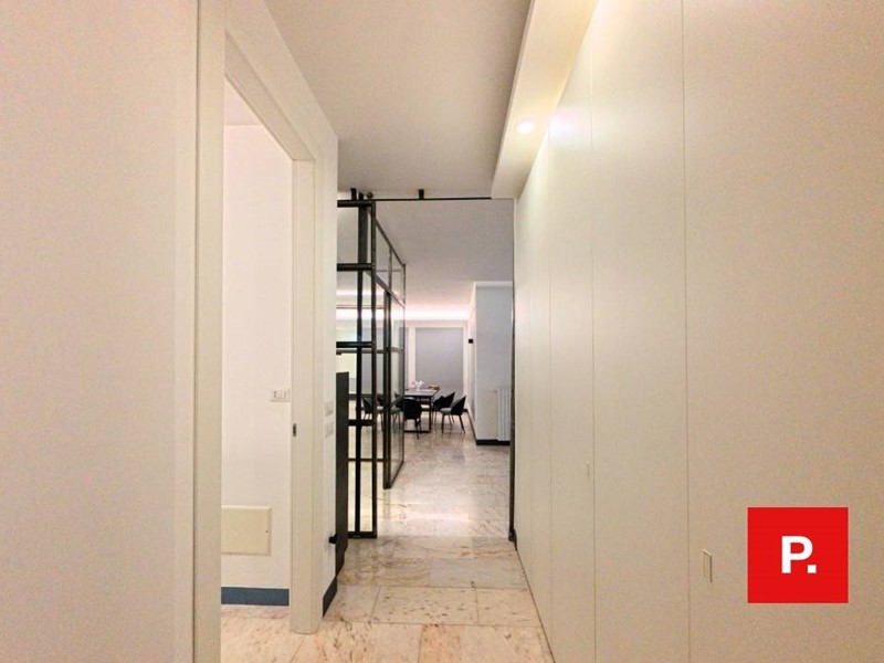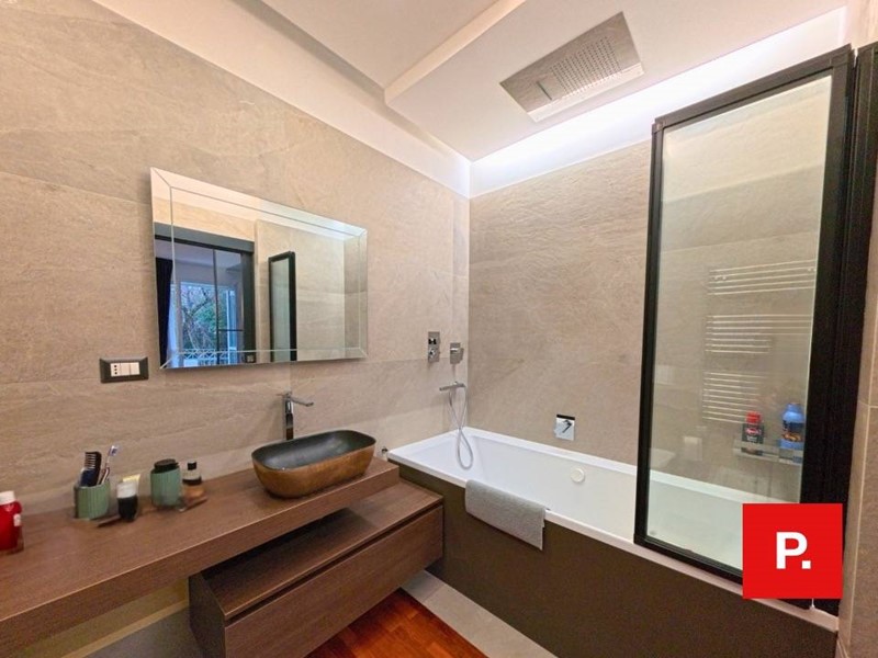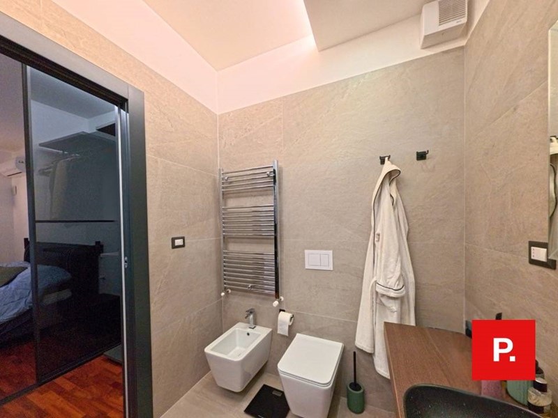 I due bagni, uno con doccia e l'altro con vasca da bagno, sono moderni e completi di tutti i comfort necessari. L'appartamento è completamente arredato e dispone di aria condizionata, riscaldamento autonomo e pavimenti in parquet in tutta la casa.