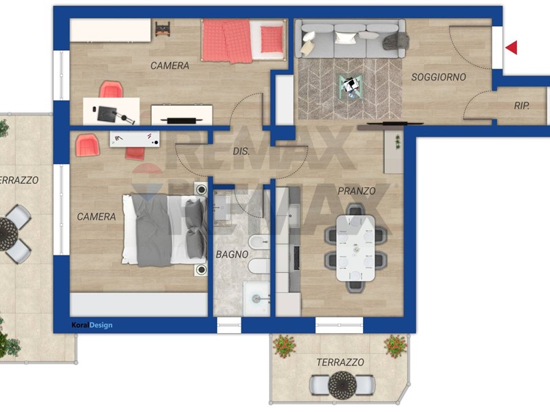 La distribuzione interna degli spazi è lineare e funzionale, con ambienti facilmente adattabili alle diverse esigenze abitative.
