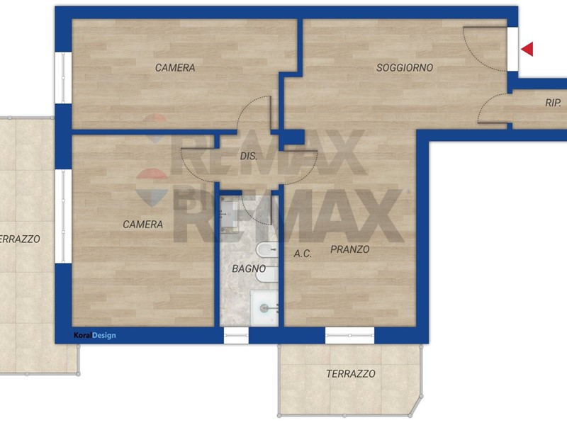 Limmobile sviluppa una superficie interna di circa 70 mq ed è composto da soggiorno con angolo cottura con uscita su balcone, due camere da letto, bagno finestrato e secondo balcone con accesso dalla camera principale.