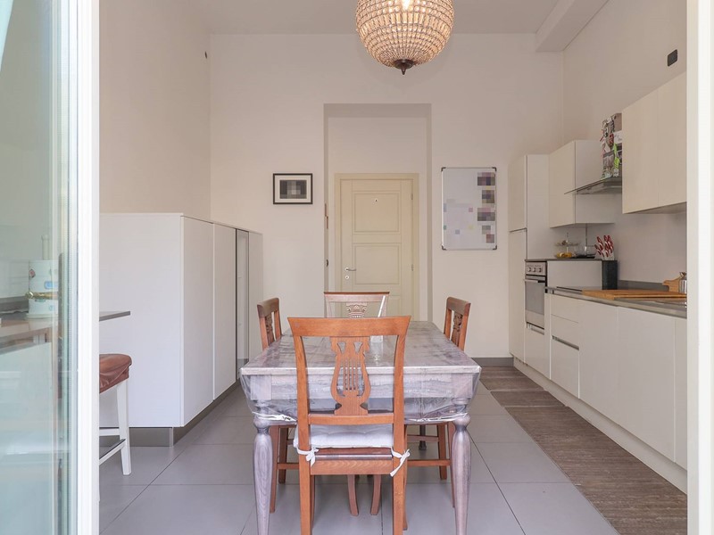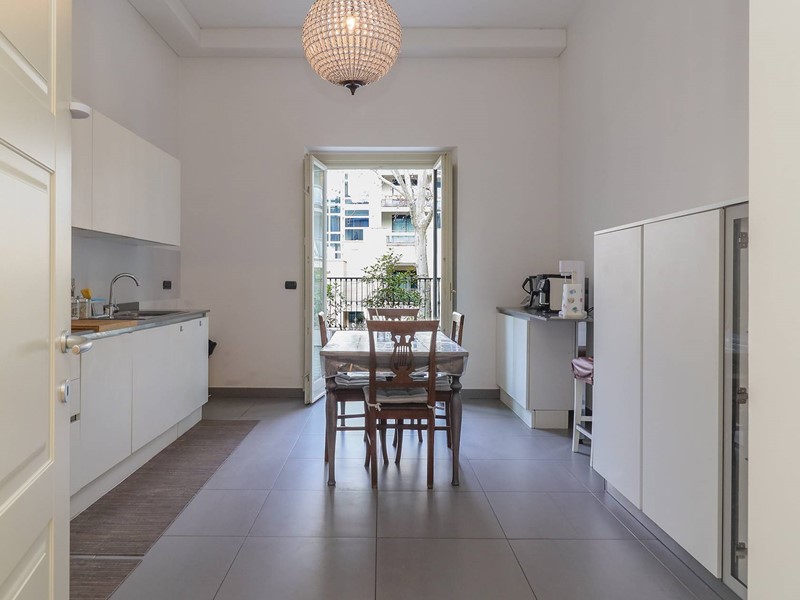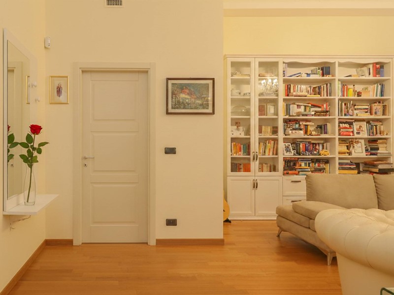 Lappartamento, di circa 150 mq, si distingue per la qualità degli spazi e larmonia della distribuzione interna. Lingresso introduce a un ampio soggiorno, caratterizzato da altezze generose che amplificano la luminosità naturale. La cucina abitabile, separata e funzionale, si apre su uno splendido terrazzo, elemento di grande pregio che offre un godibile spazio esterno.