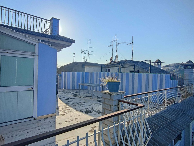 L'abitazione, posta al secondo piano, servita da una scenica, quanto comoda scala a chiocciola, è composta da ingresso su disimpegno, cucina abitabile, salone di 40 mq, tre camere da letto e due bagni (entrambi con finestra, uno provvisto di cabina doccia e l'altro di vasca da bagno), inoltre tutte le stanze hanno accesso ai balconi perimetrali e al terrazzo che sviluppano complessivamente circa mq 70 di spazi esterni.