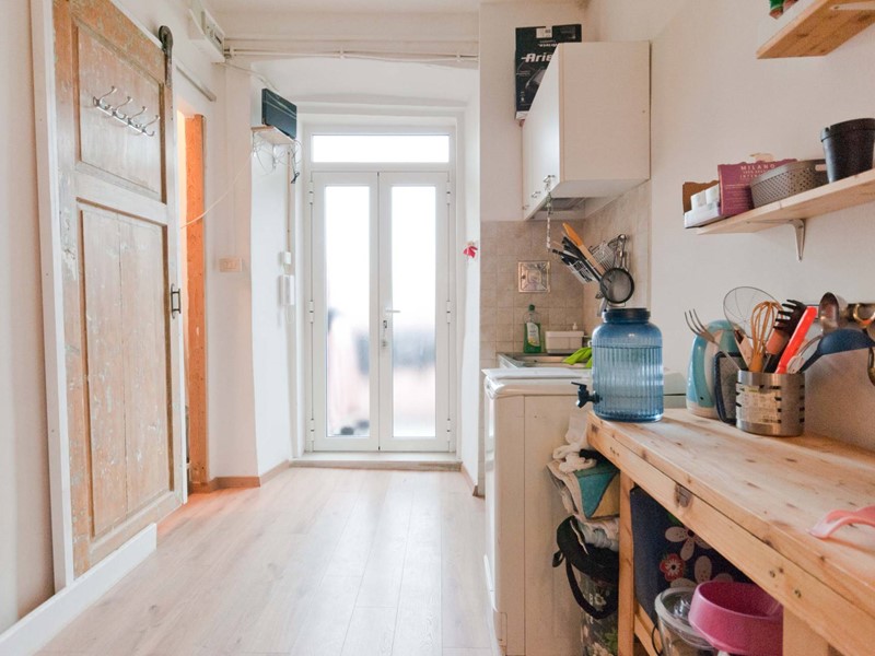 Al monolocale si accede da una balconata esterna, si entra direttamente in cucina, alla destra il bagno completo e finestrato e poi si accede alla camera da letto-soggiorno. Termoautonomo con pompa di calore, ottima classe energetica C. Luminosissimo ed estremamente silenzioso, rinnovato pochi anni fa, l'appartamento è attualmente locato con contratto a canone concordato in scadenza ad aprile 2027. La balconata da cui si accede all'appartamento è di passaggio per raggiungere gli appartamenti del piano, ma è perfetta per stendere i panni all'aperto e per godersi il fresco delle serate estive. Colonna gas condominiale da poco rifatta, porta e finestre a taglio termico in pvc e vetrocamera.